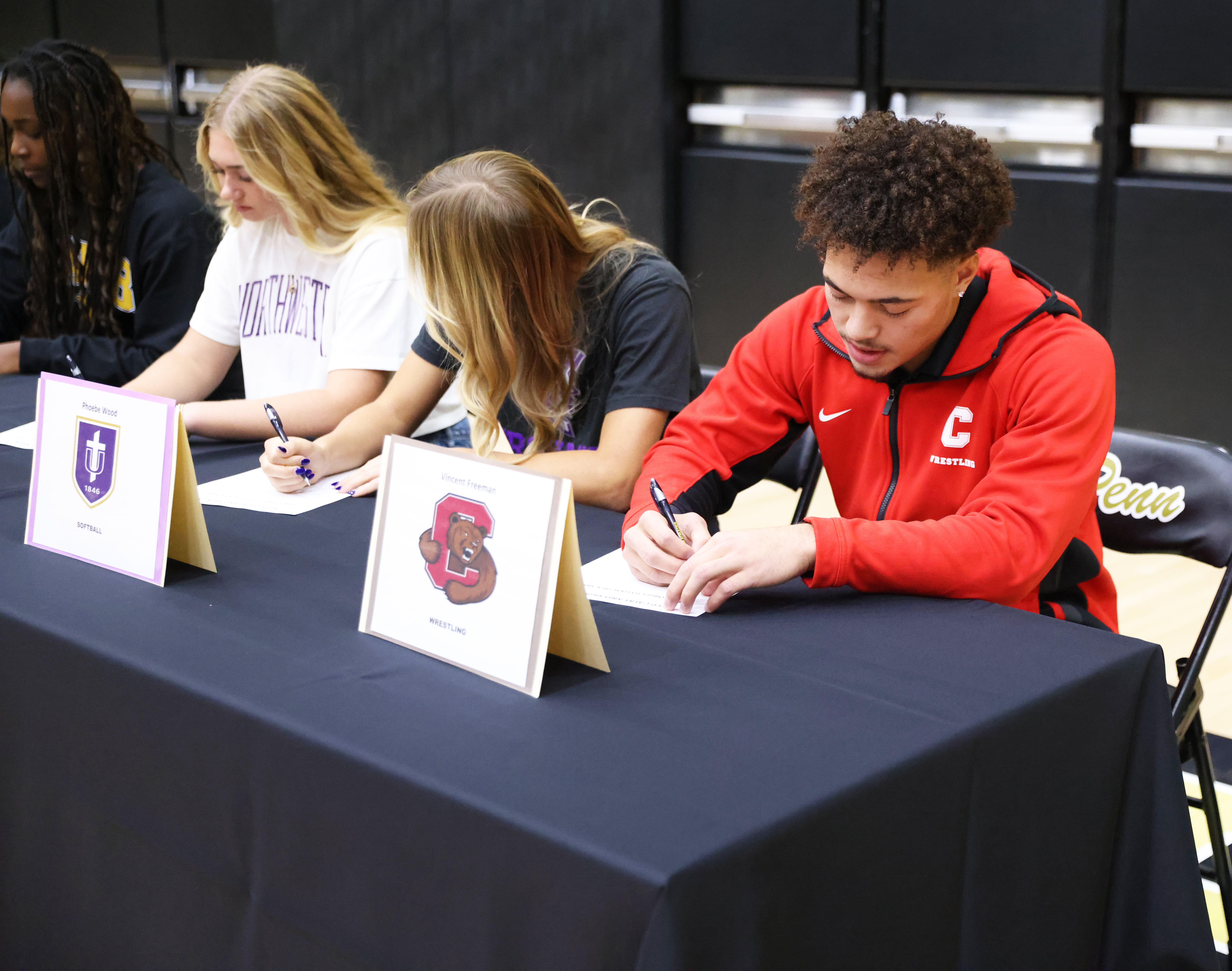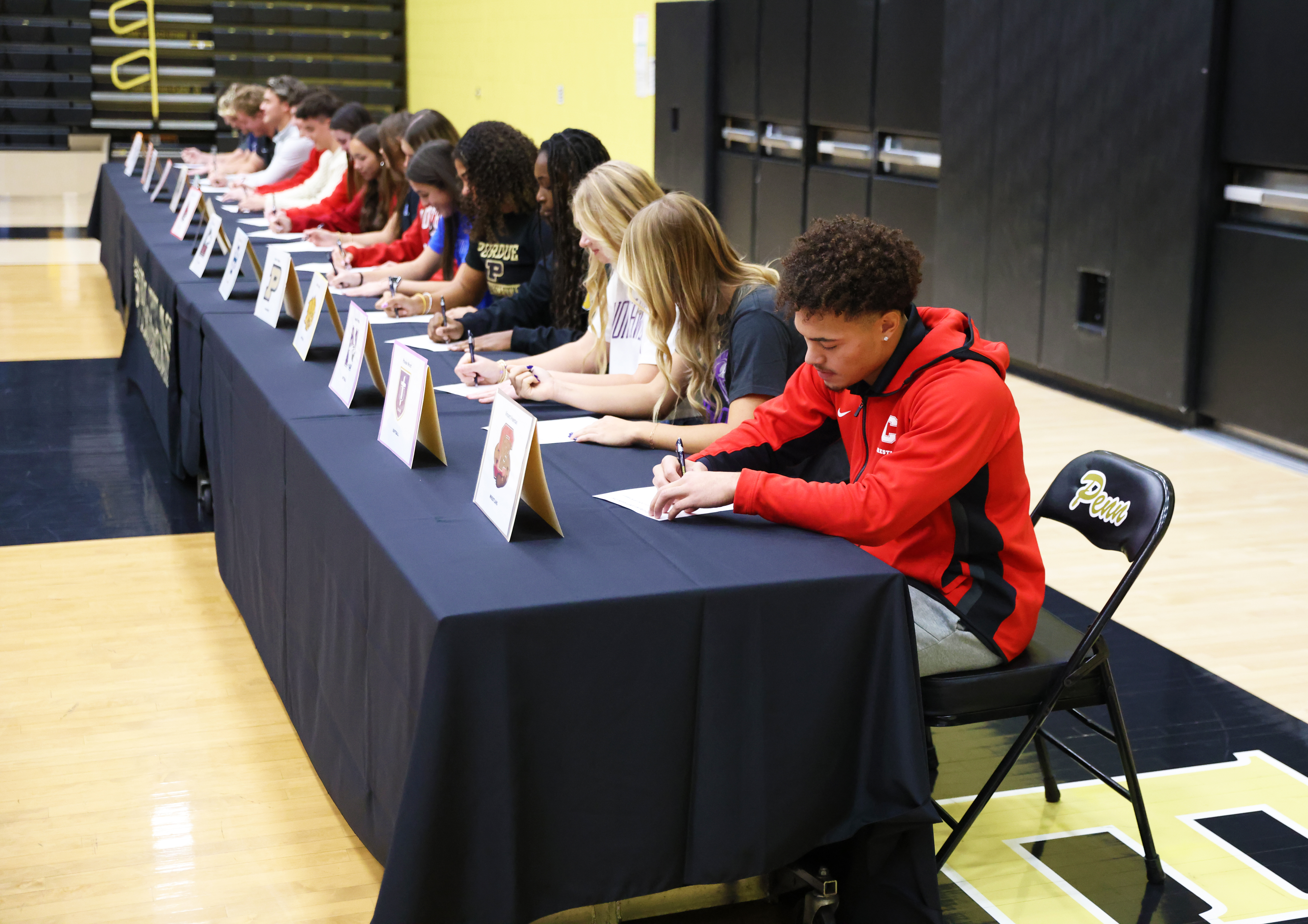 Posted on November 12, 2025Penn High School celebrated 16 student-athletes who signed to continue their academic and athletic careers at the collegiate level on Wednesday, Nov. 12, 2025.